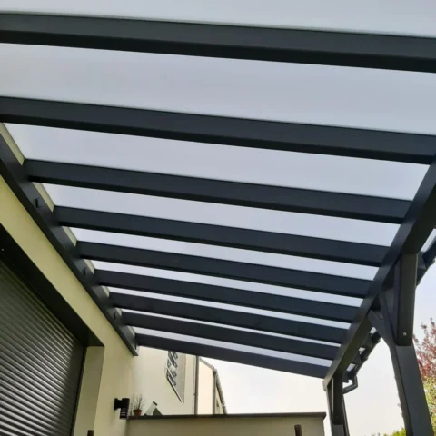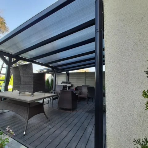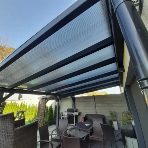 - Zadaszenia tarasów – altanopodobne zadaszenia na balkonach lub tarasach, często z transparentnym poliwęglanem komorowym – estetyczne i trwałe
