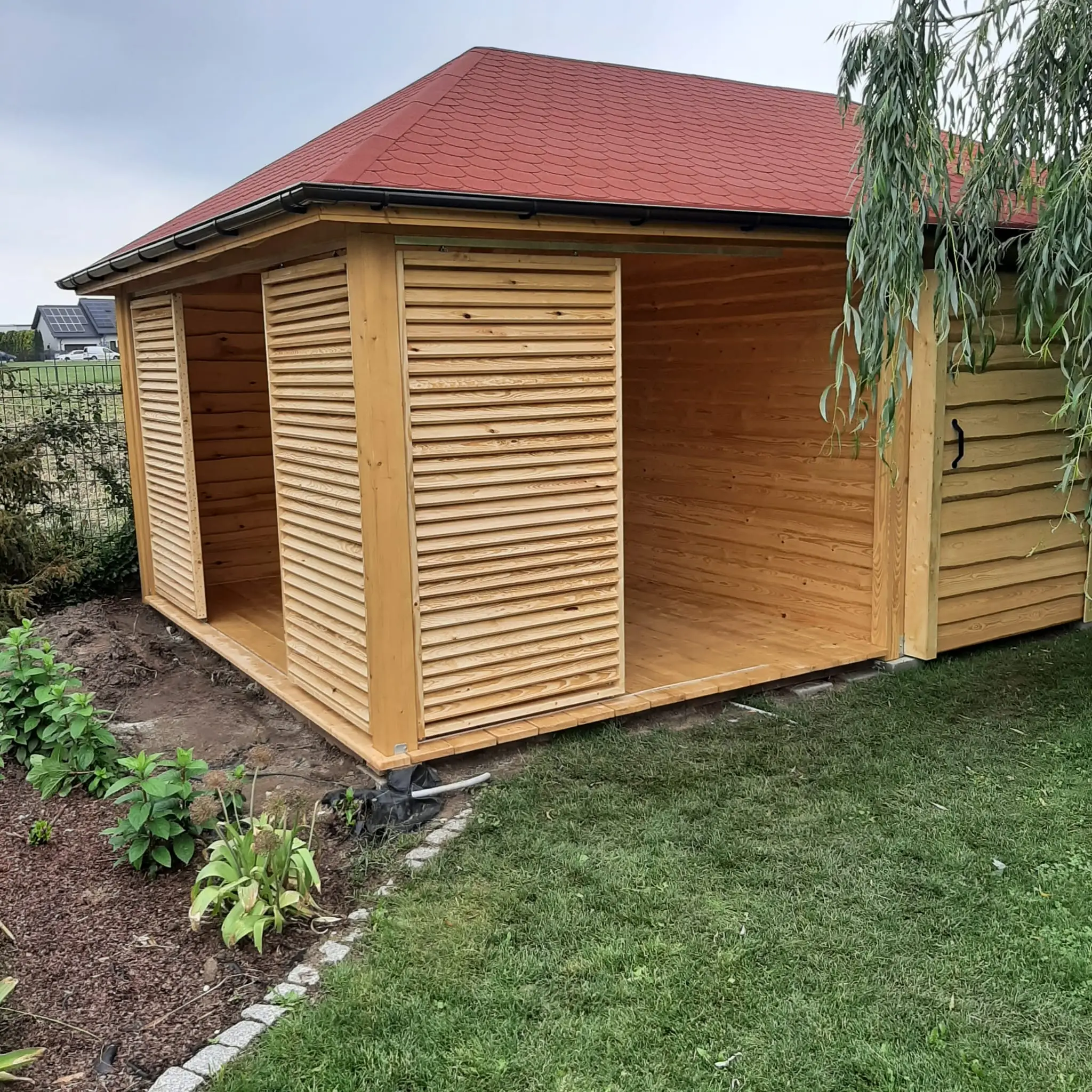 - Wiaty ogrodowe i garażowe – projekty łączące estetykę i funkcjonalność, przygotowane pod indywidualne potrzeby (np. wiaty pod fotowoltaikę, drewutnie)