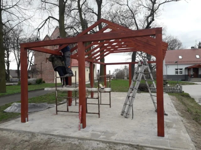 Oferujemy kompleksową realizację drewnianej architektury ogrodowej — w tym altan, pergoli, tarasów, wiat, domków gospodarczych i rekreacyjnych oraz konstrukcji fotowoltaicznych. Firma obsługuje klientów w województwie wielkopolskim, a wszystkie produkty są wykonywane na indywidualne zamówienie z drewna litego (sosna, świerk, modrzew), drewna klejonego (C24, BSH) lub egzotycznego